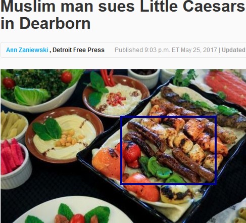 当地新闻报提供的消息显示,一个名叫默罕默德·巴兹(Mohamad Bazzi)的穆斯林市民,曾在Schaefer街道上的小凯撒(Little Caesars)披萨连锁店两次购买披萨,结果发现披萨的辣肠中都含有猪肉成分,是不清真的,而披萨的外包装上却命名标有清真(Halal)标识。一怒之下默罕默德·巴兹将小凯撒披萨店告上法庭,并索赔一亿美元(约合6.85亿人民币)。