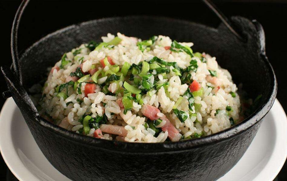 有用矮脚黄青菜再剁上一些生姜粒与糯米一起煮的,矮脚黄是南京的特产,可谓是真正的 南京菜饭 。