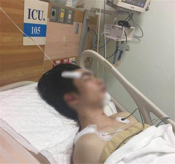 此次的事故发生在参观酒店途中。吴女士介绍说:酒店员工带领我们参观天台,楼梯非常陡,我几乎是爬着上去,参观完我和二弟手扶着墙壁和扶手下楼。在我庆幸终于走下楼梯时听见弟弟的尖叫。回过头只见木地板上多了一个洞(目测坠落高度3层楼高,至少6米高)洞很深。看不到弟弟我立刻扑向栏杆往外找,只见他摔下去以后顺着山坡在往下滚。我大弟立刻从旁边斜坡滑下去扶住他。当时二弟耳朵已经流出很多血,头上和鼻孔里也是血,眼睛通红,有多处伤口。我们急忙让附近的人叫救护车。事发后,吴女士的弟弟被送进当地一家私企医院进行抢救,医生给出的脑部CT结果显示其有3处脑出血、胪骨裂以及脑震荡。